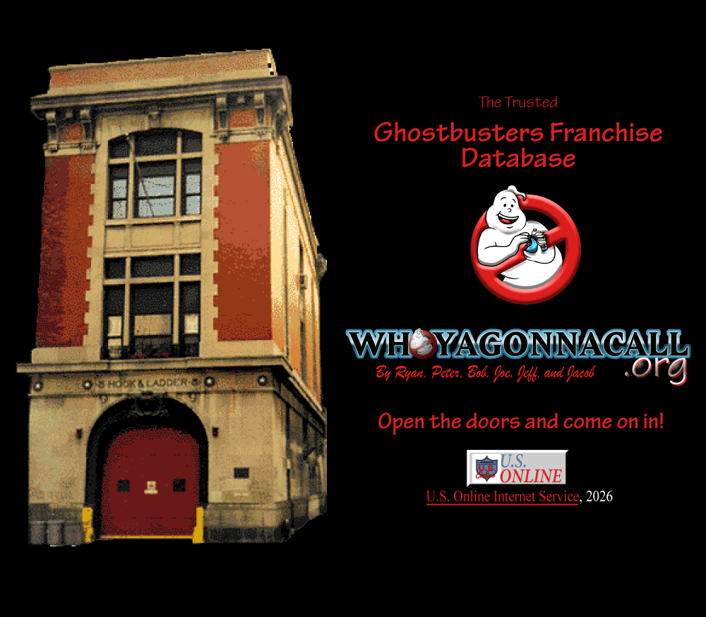 Special thanks to Adrian "Burning Knight Raven" Adams, Troy Benjamin, Bill Eskmow, Mara (Aka: Campi), Doreen Mulman, Chad Paulson, AJ Quick, Paul Rudoff, Nora Salisbury, Tom Simpson, Chris Stewart, and all others who kept Ghostbusters fandom alive on The Net. List of names from Ghostbusters Wiki.